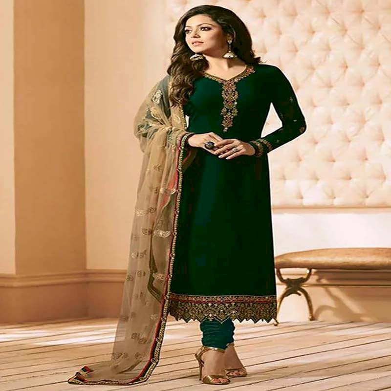 Drashti Dhami Dark Green Georgette Straight Suit-dr144