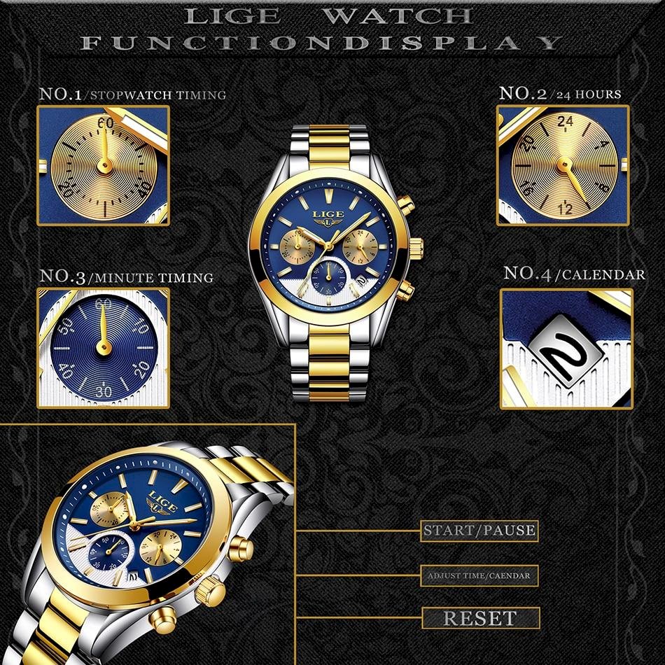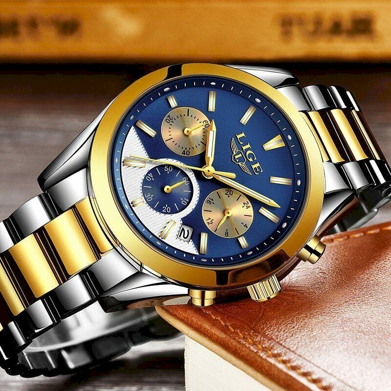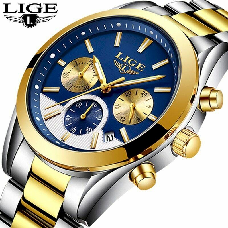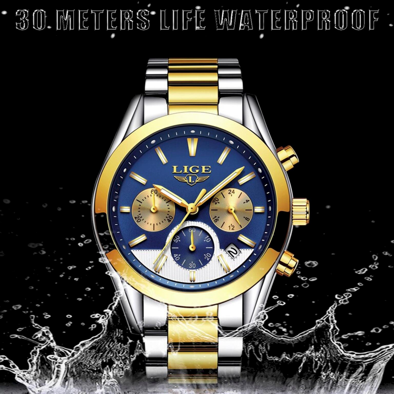 LIGE 9872 Luxury Fashion Business Quartz Waterproof Full steel Chronograph Sport Watch
