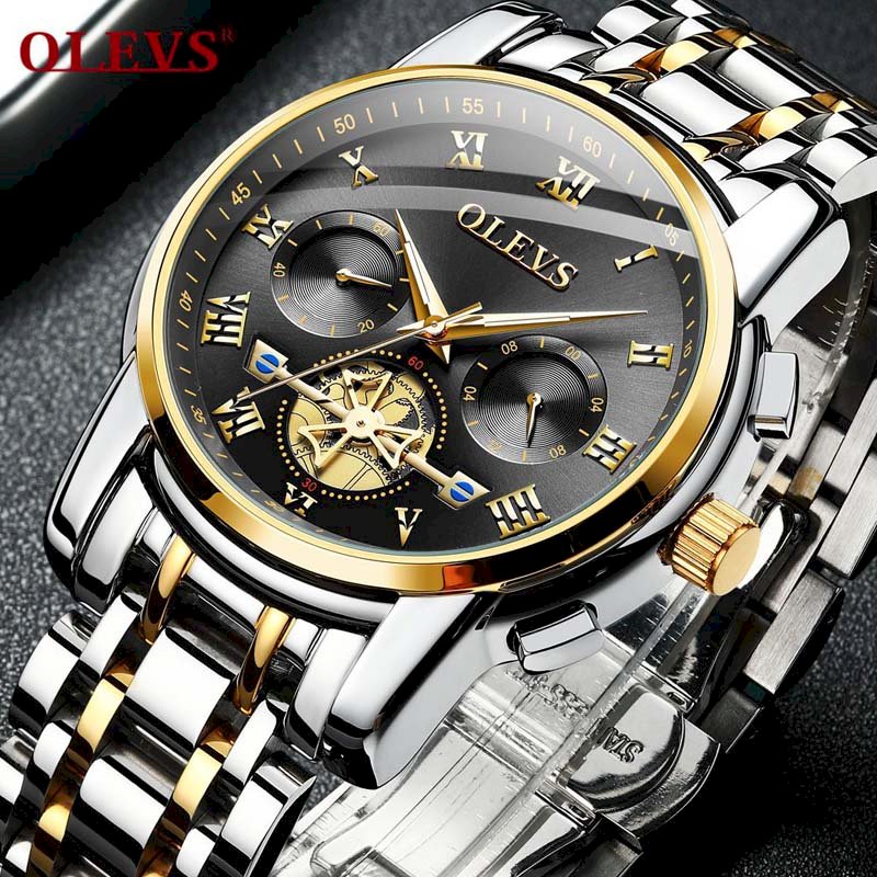 Men Quartz Date Tourbillon Chronograph Stainless Steel Hollow Waterproof Watches Luxury Fashion Clock