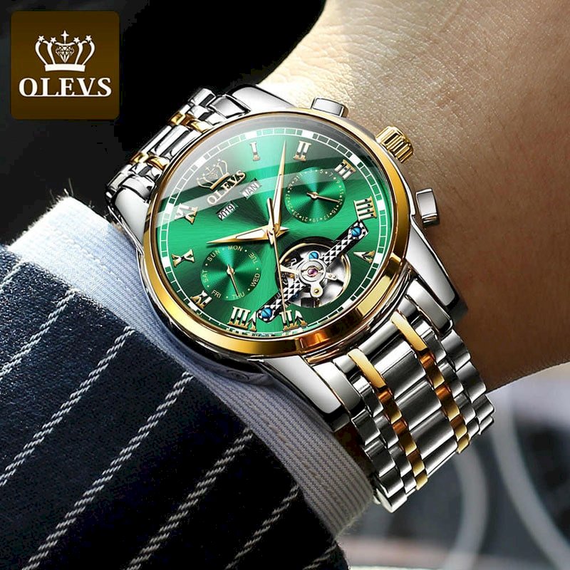 OLEVS Mechanical Men Watches Automatic Stainless Steel Waterproof Date Week Green Fashion Classic Wrist Watches