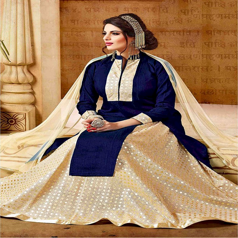 Semi Stitched Navy Blue Banarasi Silk Sharara Salwar Suit-4615