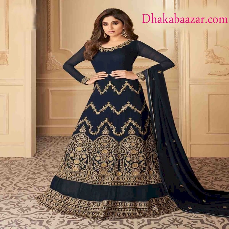 Shamita Shetty Navy Blue Color Georgette Designer Anarkali Suit